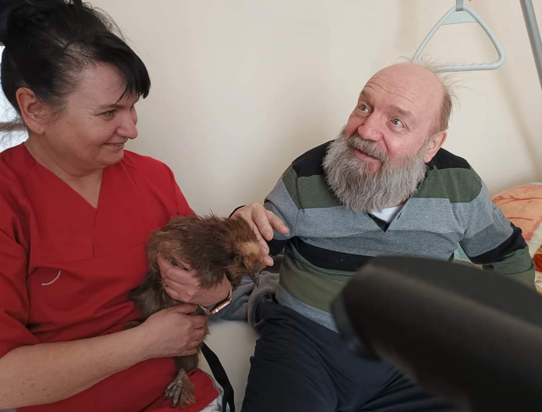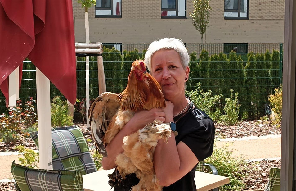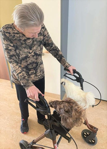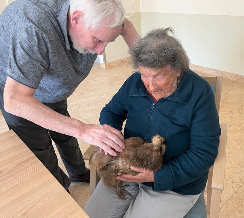Es war sehr schön zu sehen, wie bei unseren bettlägerigen Bewohnern zahlreiche Erinnerungen wieder wachgerufen werden konnten. Witzigerweise war das Huhn "der Star" im Haus!!