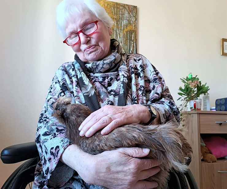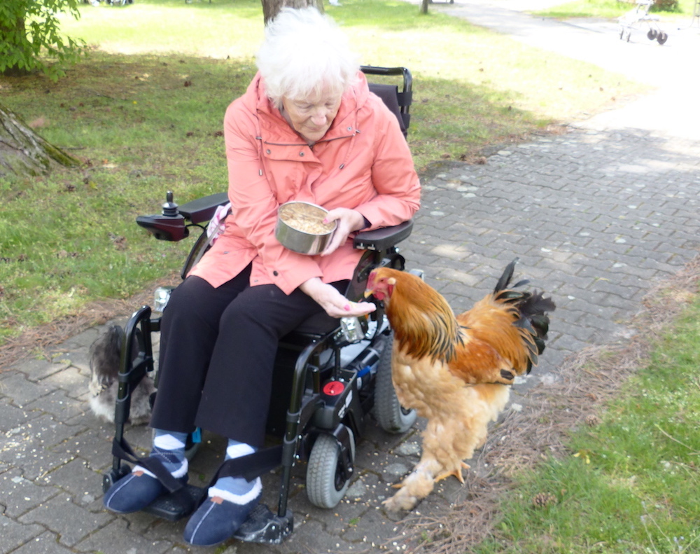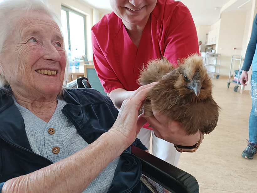Es war sehr schön zu sehen, wie bei unseren bettlägerigen Bewohnern zahlreiche Erinnerungen wieder wachgerufen werden konnten. Witzigerweise war das Huhn "der Star" im Haus!!